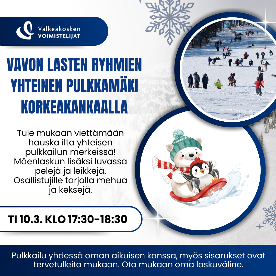 Tiistaina 10.3. järjestämme lasten ja nuorten ryhmien yhteisen pulkkailutapahtuman Korkeakankaalla klo 17:30-18:30. Mäenlaskun lisäksi luvassa leikkejä ja osallistujille tarjolla mehua ja keksejä.…