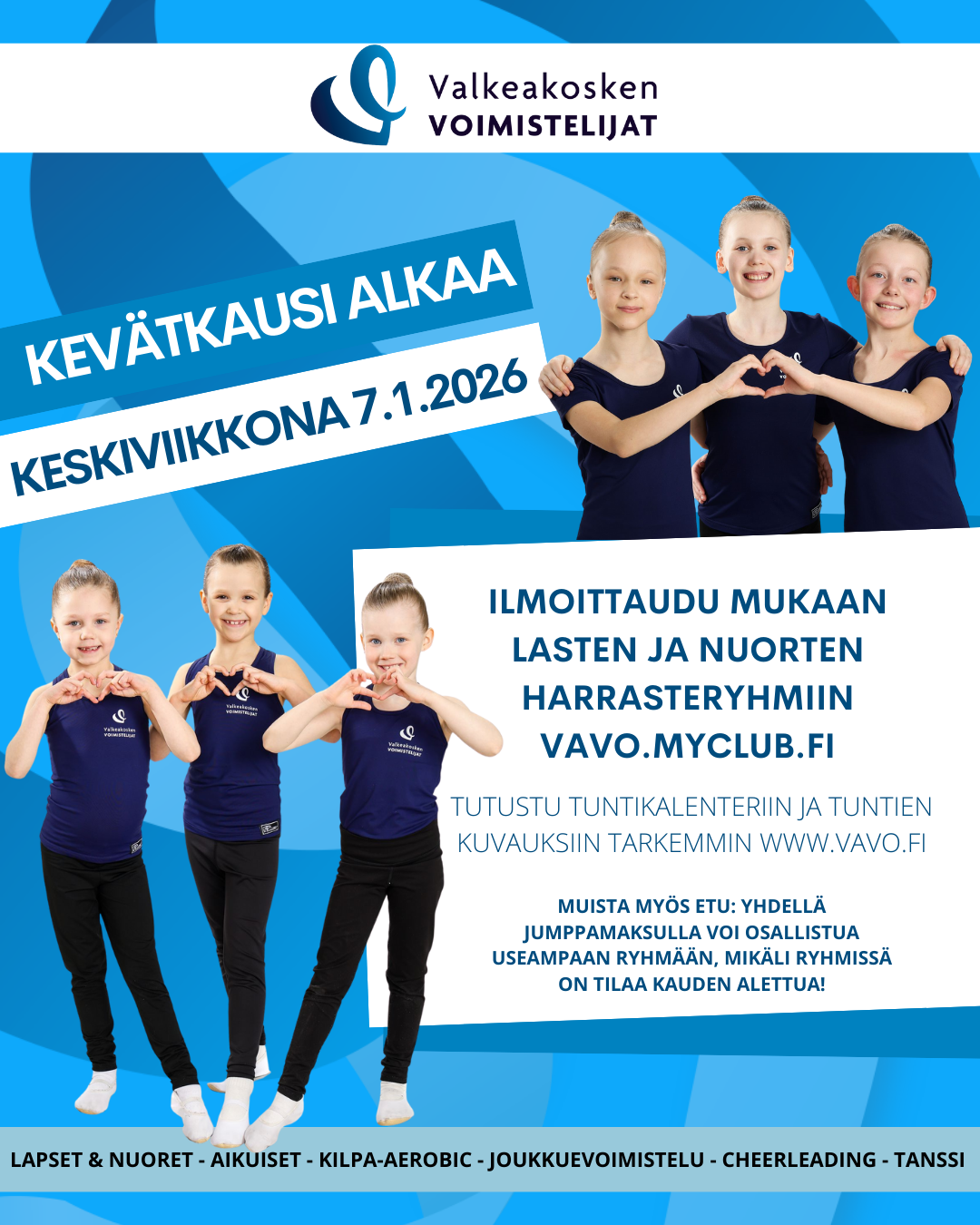 Valkeakosken Voimistelijoiden harrasteryhmien kevätkausi alkaa keskiviikkona 7.1.