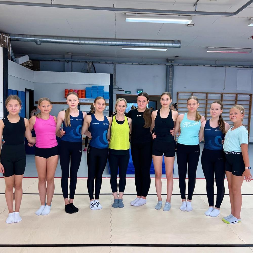Kilpa-aerobicin valmennusryhmät aloittivat lomajakson jälkeen uuden kauden perinteisellä leiriviikolla 23.-30.7. Mukaan lajiin saatiin kesäkauden aikana lähes 20 uutta voimistelijaa, joten yhteisen kesäleirin lomassa voimistelijat pääsivät hyvin myös tutustumaan toisiinsa. Seura tekee aktiivisesti yhteistyötä eri maiden valmentajien & tuomareiden kanssa ja tänä vuonna saimme kesäleirille mukaan uutta osaamista Englannista. Kuluneen viikon aikana voimistelijat harjoittelivat valmentaja Christina Fossheimin johdolla painopisteenä erityisesti lajin tekniikka ja puhtaat linjat. Osa kilpa-aerobicin huippuryhmistä valmistautuu lokakuun alussa käytävään kansainväliseen Cup -kilpailuun Bulgarian Plovdivissa ja leirillä tehtiinkin myös ohjelmaharjoittelua, mihin saatiin myös uusia vinkkejä. Leiri koettiin tehokkaaksi & hyödylliseksi ja paljon uutta oppia ja inspiraatiota saivat voimistelijoiden lisäksi myös kaikkien ikäryhmien valmentajat.
