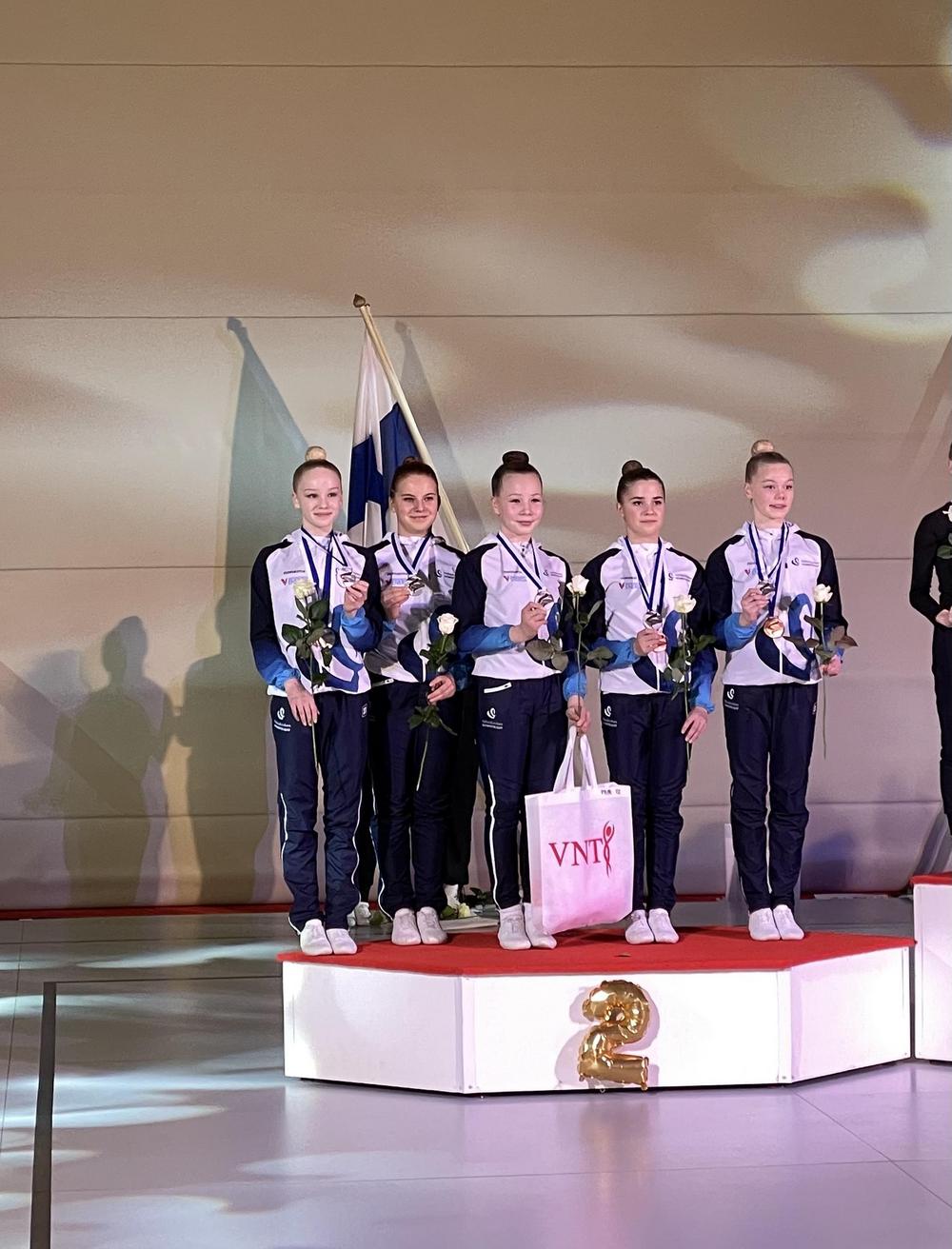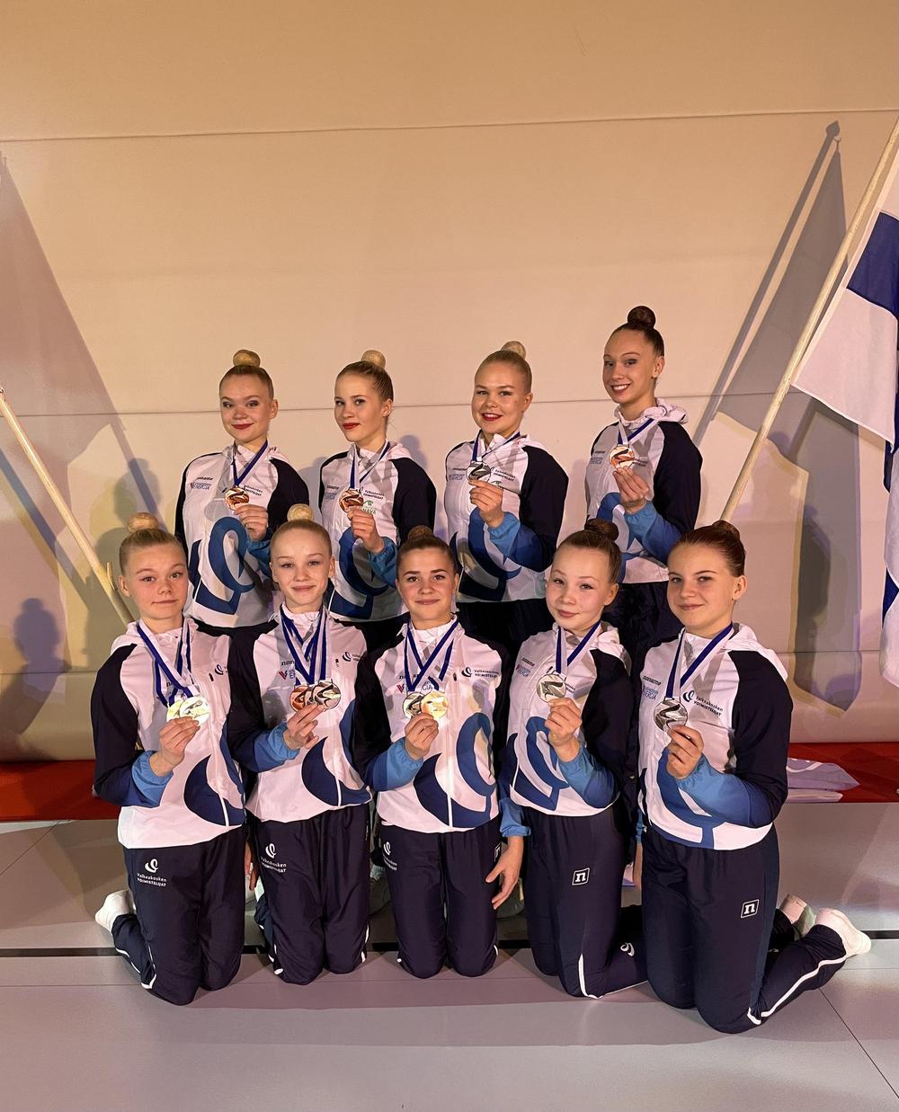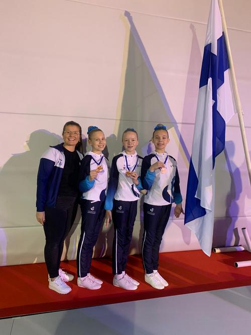 15-17 -vuotiaiden joukkuesarjassa kokoonpano Linnea Antinaho, Netta Hakonen, Jertta Väisänen onnistui tekemään finaalissa ehjän, yhtäaikaisen ja onnistuneen suorituksen (pistein 18,300), joka palkittiin upeasti uuden kokoonpanon SM-pronssilla. Joukkue on ollut kasassa vasta elokuusta, mutta jo nyt nähtiin hyvin yhteen hitsautunut kokonaisuus. "Viikonlopun kisoissa oli hyvä, mutta jännittynyt tunnelma. Kisahallissa oli myös upea kannustus, mikä toi hyvän fiiliksen mennä suorittamaan. Saimme tehtyä onnistuneen ja yhdenaikaisen suorituksen, jolla keräsimme ennätyspisteet. Nämä pisteet riittivät kolmanteen sijaan ja sitä kautta saimme täytettyä kaikki kisaan asetetut tavoitteet", joukke summasi menestystarinaa.