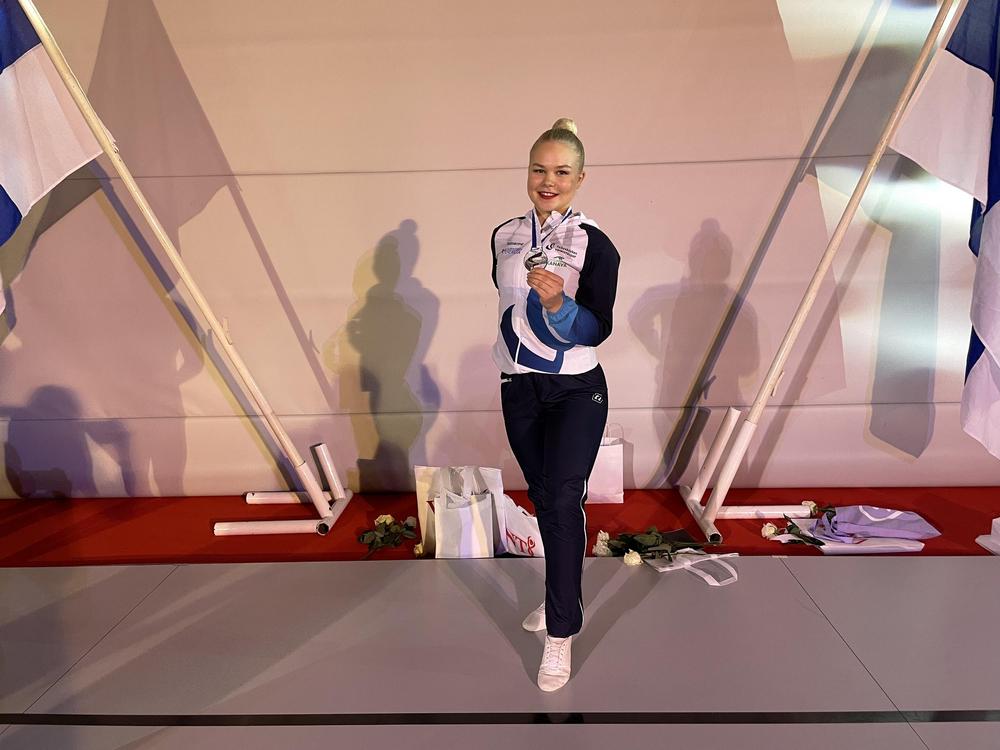 15-17 -vuotiaiden yksilösarjassa valovoimainen Nelli Paulamäki onnistui finaalisuorituksessaan loistavasti ja nappasi yksilösarjan SM-hopeaa pistein 19,700. "Erityisen onnellinen olen Nellin ansaitusta mitalista viimeisessä junnusarjan kisassa pitkän kauden päätteeksi. Ihailen kyllä Nellin rautaisia kisahermoja, usein hän näyttää parastaan tiukassa paikassa ja finaalin ehjä suoritus ilman isoja virheitä takasi upeasti hopeamitalin kovatasoisessa sarjassa" hehkutti VaVon päävalmentaja Laura Vihervä. "Olen myös ylpeä toisen yksilösarjan finalistin, Netta Hakosen, suoriutumisesta, hän oli hienosti finaalin kuudes" Vihervä jatkaa. "Olin todella tyytyväinen ehjään suoritukseen ja hopeamitaliin. Vaikka oli paineita, pystyin silti tekemään hyvän suorituksen ja nauttimaan lavalla olosta. Pitkä kausi oli hyvä päättää onnistuneeseen suoritukseen", kertasi onnellinen Paulamäki viikonlopun kisaa.