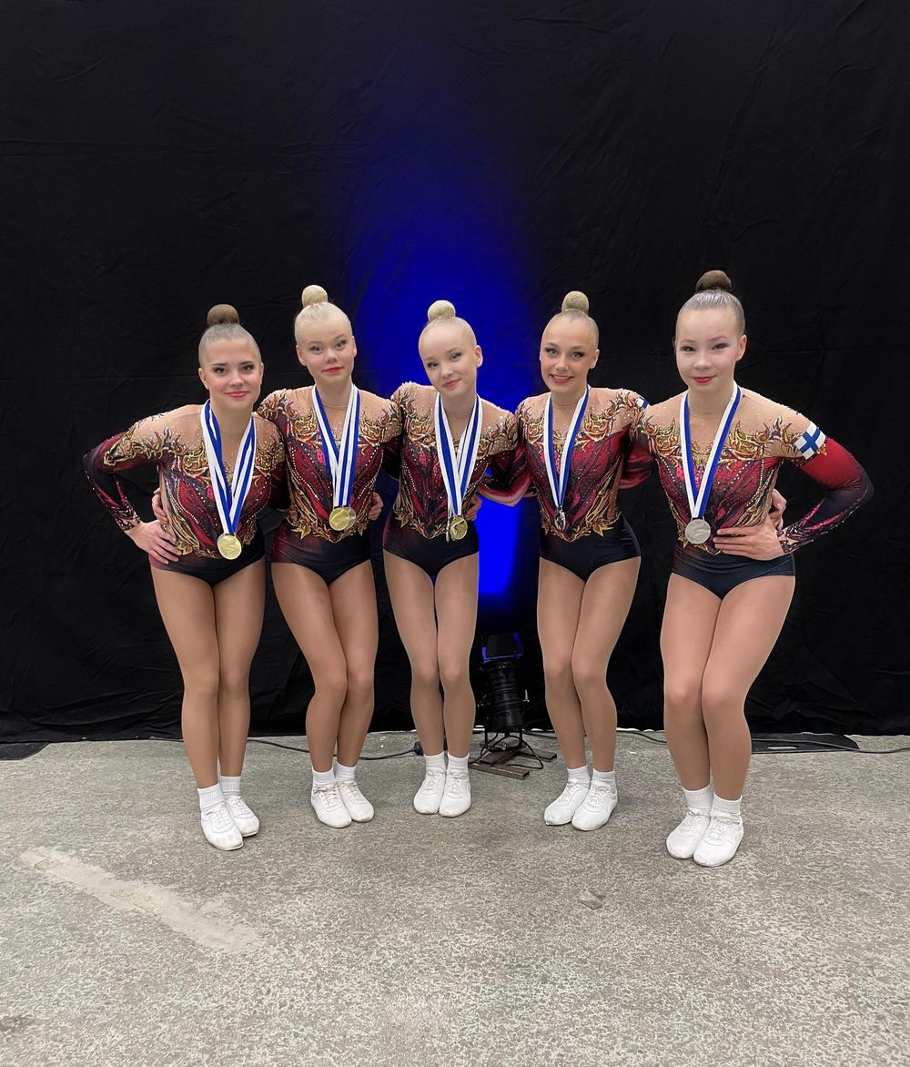 12-14 -vuotiaat täydensivät VaVon upeaa SM-menestystä vielä sunnuntaiaamupäivän finaaleissa, kun ryhmäsarjan kokoonpanolle Peppi Haataja, Fiinu Heikkilä, Anni Ketola, Emmi Ketola, Hilla Nysten ripustettiin kaulaan SM-hopeaa.