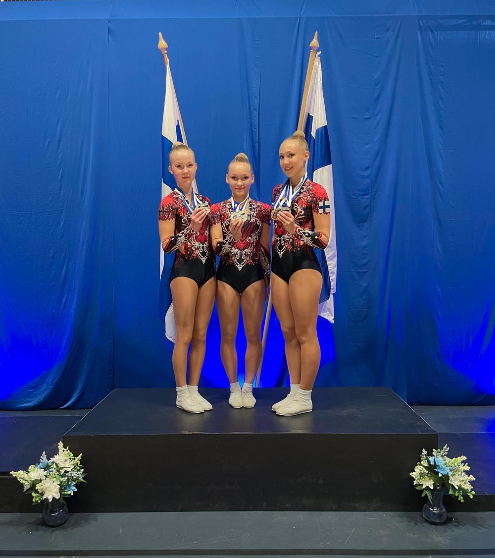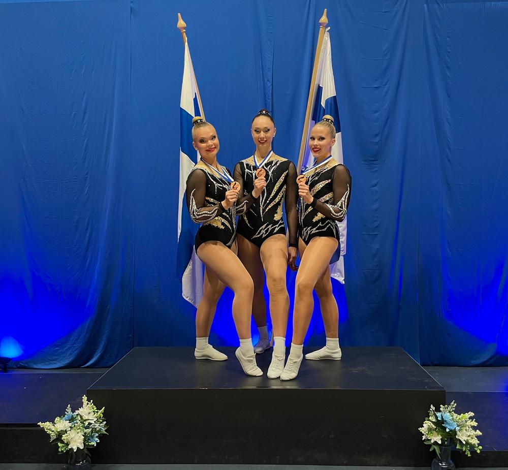 Samassa sarjassa kokoonpano Sanni Fallström, Milja Kautto, Inessa Romaniv nappasi jälleen seuralle toisen mitalin sijoittuen kovassa sarjassa SM-pronssille myös huippupisteillä 18,100. VaVon kolmas joukkue Peppi Haataja, Emmi Ketola, Hilla Nysten sijoittui finaalin seitsemänneksi.