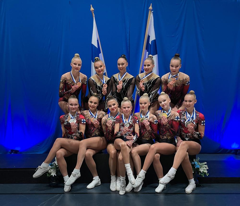 ”SM-finaaleissa nähtiin meiltä upeita suorituksia yksi toisensa jälkeen. Olen todella ylpeä kaikista voimistelijoista ja seuran menestyksestä. Vähintään yksi mitali saatiin kaikista sarjoista, mihin osallistuttiin”, kommentoi päävalmentaja Laura Vihervä.