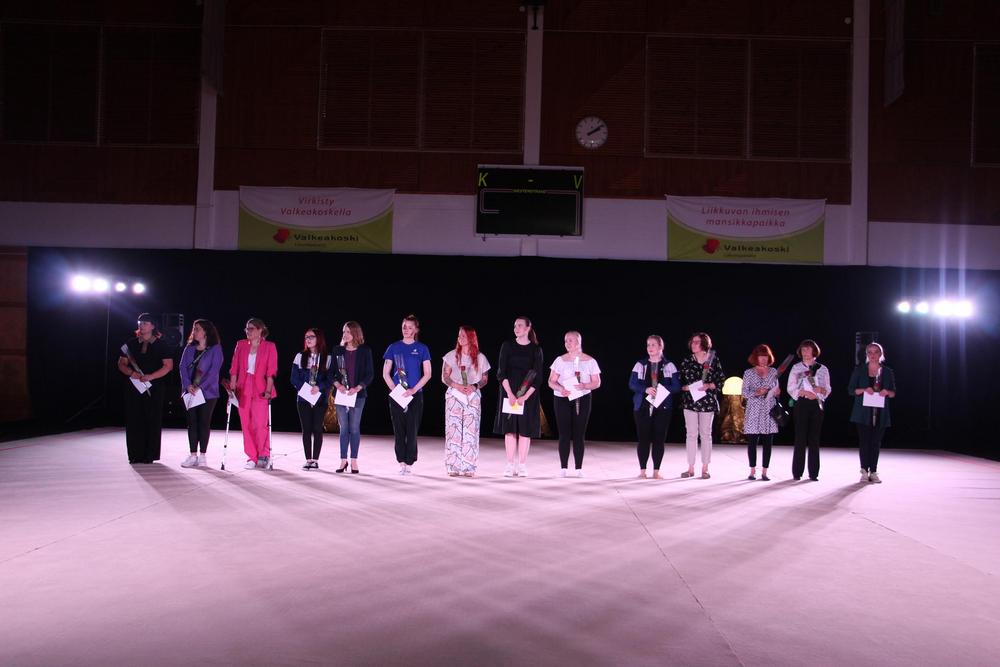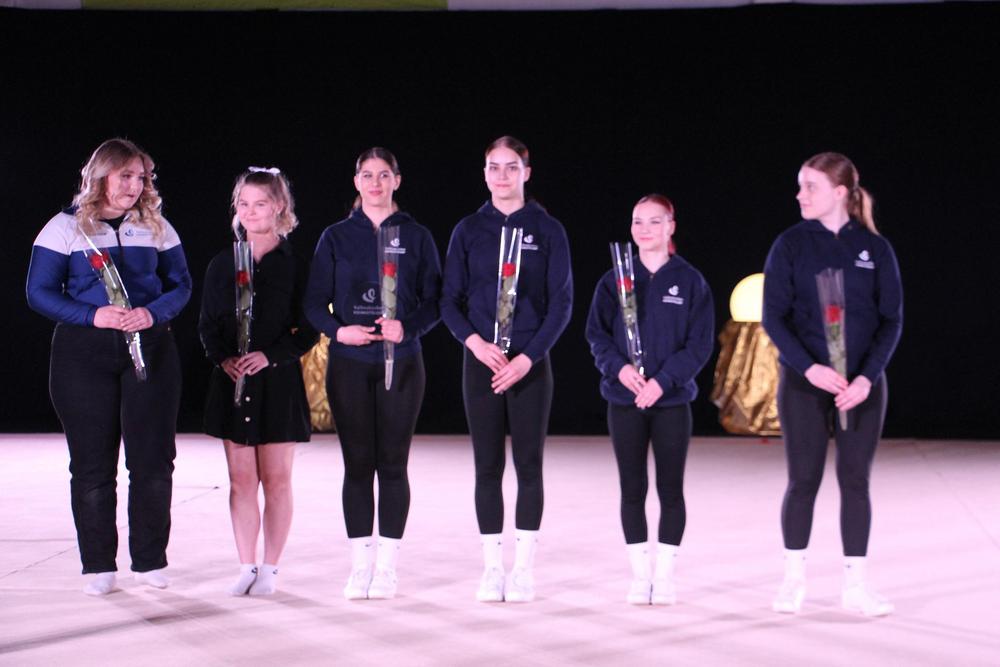Kilpa-aerobicin Suomen mestarit ja heidän valmennustiimi palkittiin näytöksessä