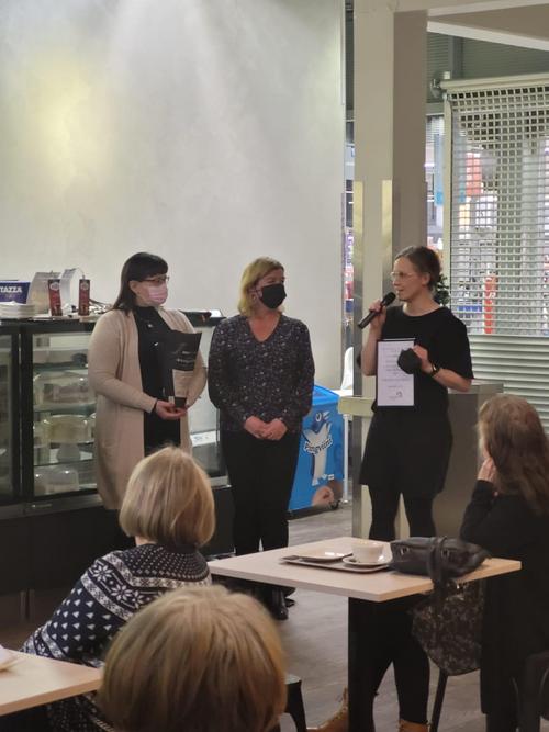 Kunniamaininnan vastaanottivat seuran puheenjohtaja Hanna Salminen, hallituksen kilpaurheilun vastaava Hanna Kekkonen ja aikuisten liikunnan vastaava Riitta Latosaari.